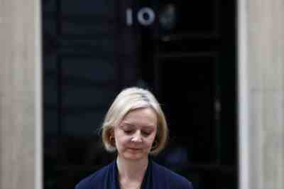 ▲2022年10月20日,特拉斯在唐宁街10号外宣布辞去首相职务和执政党保守党党首职务。
