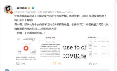 各国目前关于核酸和抗原的需求仍然是巨大的,而且他们很难做到中国如此低的成本。核酸公司违规操作造假等现象固然存在,但如果国家真是为了所谓的“利益”来维持防疫政策,那放开之后按西方的价格来收取核酸和抗原费用岂不是赚得更多?从成本上看,一个人一个月每天做混管检测,也不过百元左右,一盒辉瑞神药多少钱?如果我们的放开真的会导致数百万人进ICU,那从国家到普通家庭将要付出的代价显然不是核酸费用能相比的。