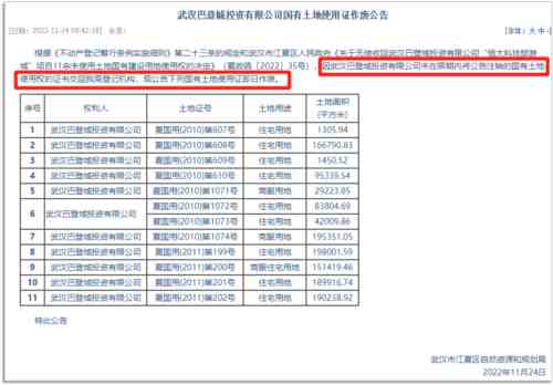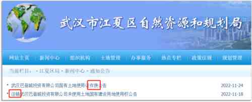 最新的公告也是在昨天,因恒大未在限期内将公告注销的国有土地使用权证书交回我局登记机构,江夏区自然资源和规划局表示作废这11宗土地。