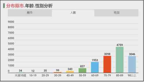 从上图看到,目前对岸死14276,其中54%为80岁以上的老人。