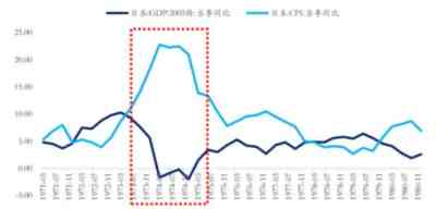 在19世纪70年代,日本亦曾陷入严重的滞胀格局,通货膨胀率一度达到20%以上,而GDP增长率跌至0%附近。