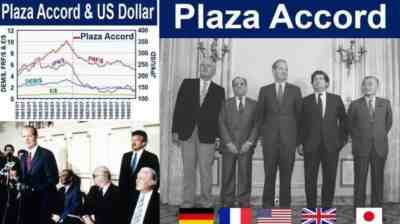 美国希望通过美元贬值来增加产品的出口竞争力,以改善美国国际收支不平衡状况,所以签订此协议。