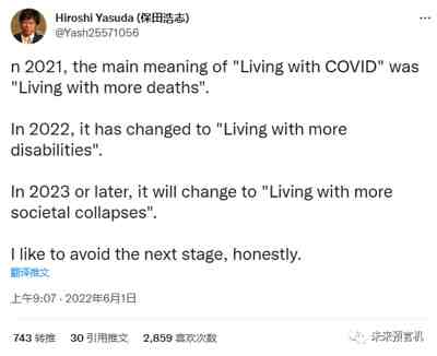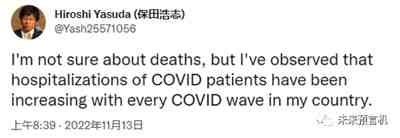 翻译:我不确定死亡数字(死亡数字可以操纵),但是我观察到,在我们国家日本,新冠患者的住院数随着一波又一波的疫情,一直在增加。