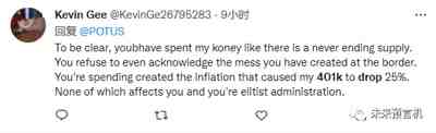 上图这位直接向拜登开炮:要说清楚,(拜登)你把我的钱随意拿去挥霍仿佛我的钱都是天上飘来的。你甚至拒绝承认你在边境制造的混乱。你制造的通货膨胀,导致我的401k账户跌了25%。这些没有一样影响到你,你是精英政府阶层。