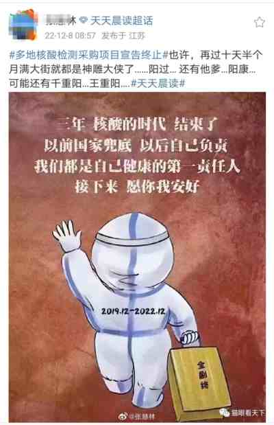还有一点非常耐人寻味。全国多地放开后,我却看到排队做核酸检测的人并没有减少,相反是变多了。原来封闭时都想偷偷溜出去转一圈,现在放开了,却变得格外谨慎不敢外出了。
