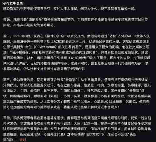 全文要点总结:新冠感染使用布洛芬类药物退烧有导致长新冠的风险。中药不懂也不要乱用。更不要随意组合用药。药物用错了,轻则后遗症长新冠,重可死亡。