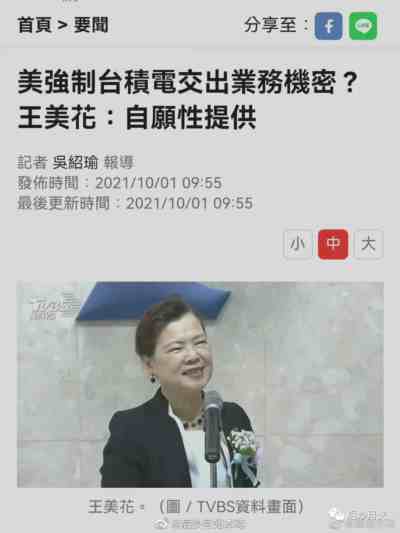 台“经济部门负责人”王美花去年不是说了,台积电交出机密资料给美国是“自愿的。