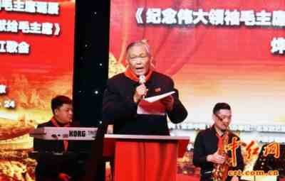 中国内地著名男主持人焦通主持了今天下午的节目,而且在现场演唱了一首歌曲《好男儿闯一闯》,为纪念伟大的领袖毛主席诞辰129周年活动助阵,受到大家欢迎。(中红网金梅摄)