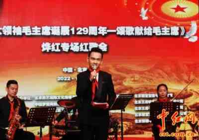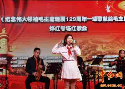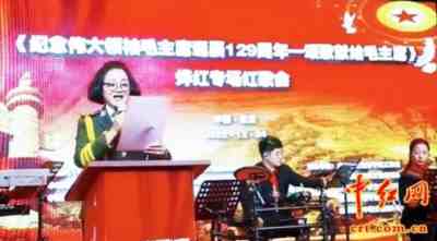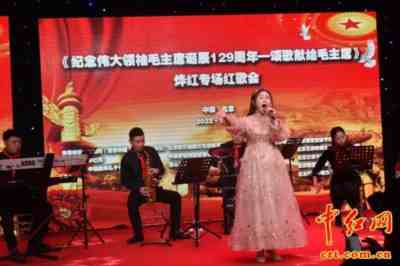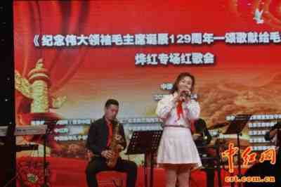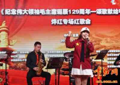 一场引人注目的《纪念伟大领袖毛主席诞辰129周年——颂歌献给毛主席》烨红专场红歌会,今天下午在北京举行。烨红曾在中央广播电影乐团艺术团担任独唱演员,中央电视台星光大道优秀歌手 ,2006年参加中央电视台春节联欢晚会节目录制并担任领唱,先后荣获歌唱家、中国当代德艺双馨歌唱家等荣誉称号,多年来一直在从事公益事业,弘扬中国传统优秀文化和红色文化的工作而努力。今天,由这位德艺双馨歌唱家烨红女士发起,以传唱红歌的形式,来缅怀这位伟人!
