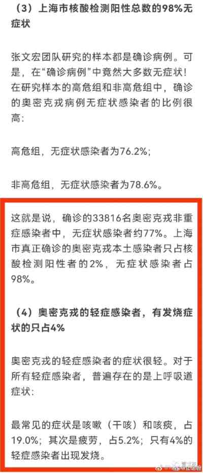 首先要抱歉,我发微博的时候确实不严谨,说了一句张那篇论文搞出98%无症状。张的原文中没有这个数字,是别人从论文数据中进一步推导出来了98%。