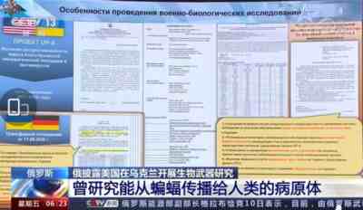 他们截获的文件材料显示,美直接支付在乌生物武器研究的费用。美国在乌研究能从蝙蝠传播给人的病原体,对炭疽病和非洲猪瘟致病菌的研究还在继续;140多个装有蝙蝠体外寄生虫的容器,大量来自乌克兰各地区、完全属于斯拉夫族群的血清样本被转移到国外。