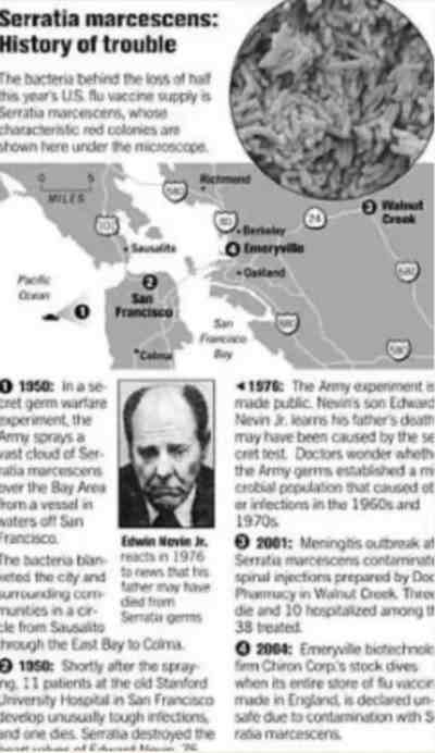 1950年8月31日,美国旧金山湾里有几艘美国海军的扫雷舰在“执行特殊任务”。这个特殊任务就是在旧金山散布致命的“粘质沙雷氏菌”。