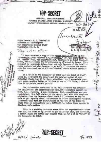 1945年8月二战日本投降后,731部队的头目石井四郎与美军司令麦克阿瑟达成了秘密口头协议,后来又又在日本的镰仓酒馆签署了书面化的、保护731部队成员免于被起诉的协议,史称“镰仓协议”。
