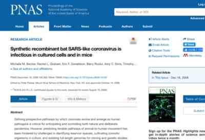 2008年11月,巴里克在美国科学院院刊上发表了一篇论文《合成重组的蝙蝠SARS样冠状病毒在培养的细胞和老鼠中具有感染性》,详细记录了一个全新人造冠状病毒从设计、创造到复活,从刺突蛋白的构建到感染试验的全过程。