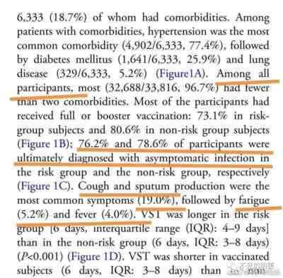 1.2022年6月18日,华山医院副院长马昕教授(骨科专家)和张文宏教授(肝病专家)在高福院士任主编的中国CDC周刊发表了一篇重磅论文,该论文给出了上海疫情期间奥密克戎感染的数据,在今天的我们看来不可思议的数据:重症率0.065%,高危组无症状比例76.2%,非高危组无症状比例78.6%,发烧4%。(图1)