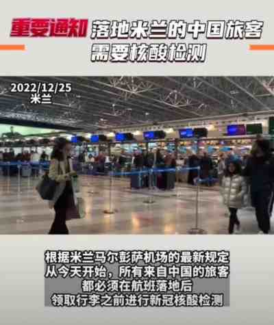 意大利那边就不一样了,要求所有中国游客落地意大利之后必须强制做核酸检测,如阳性不得入境,而且核酸费用要求中国游客自己支付。