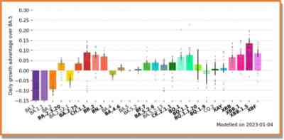 ↑ 以上是当前各毒株相对于BA.5的增长优势(其实跟《天阶序论》里的天梯排行榜差不多一回事儿),