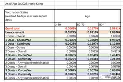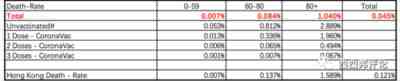 香港的数据很细,很全,每个年龄段,不同接种方案,的总人数,感染人数,死亡人数都有。香港的新冠死亡认定标准最宽,而且比较客观,主观判断成分较少。