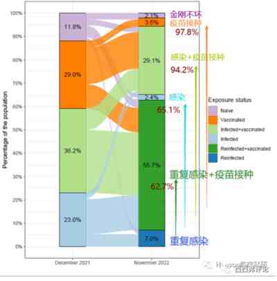 2021年,美国的CDC有个估算,那时大概4个感染者中,只有一个会被报告记录。就是真实感染人数,是报告人数的四倍。美国现在的报告感染人数是1亿人,但根据2022年11月,哈佛、耶鲁和斯坦福三所美国高校的公卫学院的研究。美国已经有94%的人感染过新冠病毒,其中65%的人感染过不止一次。这个应该就是抽样调查和模型估算一起做的估计。