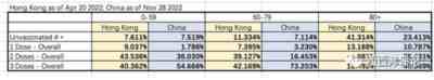 香港感染高峰是2022年2月底开始,高峰后2个月,4月20日的疫苗接种率,还不如中国大陆感染高峰开始前11月28日的疫苗接种率。