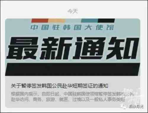今日,中国驻韩国大使馆发布关于暂停签发韩国公民赴华短期签证的通知: