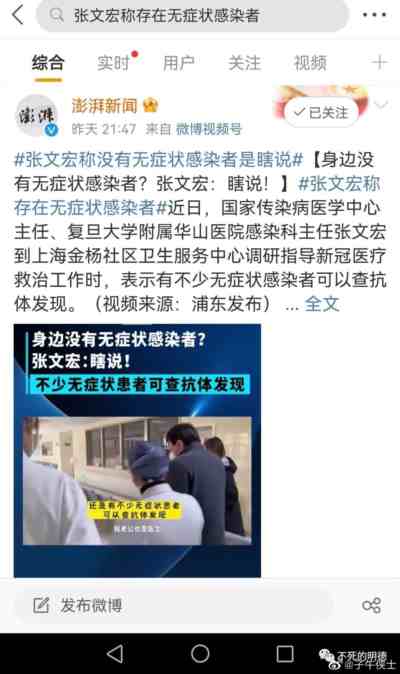 今天,一条“张文宏称存在无症状感染者”的话题,引爆了网络,许多朋友跑来质疑,直接甩出了张文宏教授用过的数据: