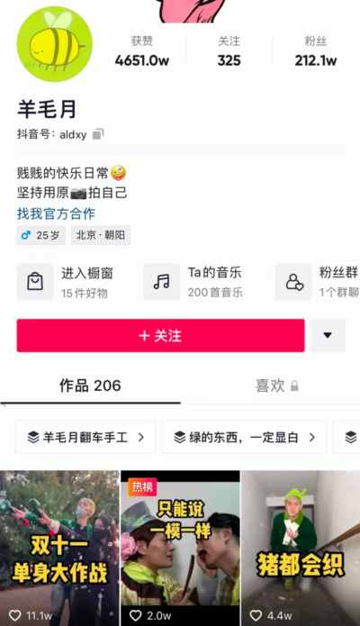 在这次短暂的网络狂欢中,这个名叫@羊毛月的ID在某音上算是格外活跃。