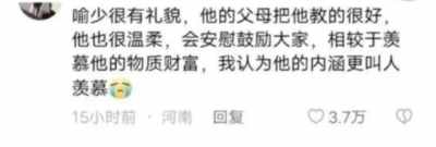 评论区的“奴才”们也继续开始加戏,在他们的眼中,“喻少”不仅仅是个学富五车、家缠万贯的少爷,还是温柔体贴、风度翩翩、单纯善良的“王子”。