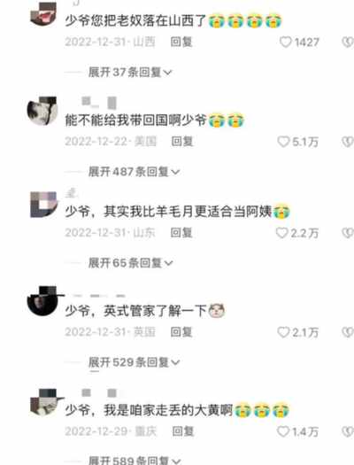 他的抖音账号在短短几天内涨粉数百万,他的“赛博奴才”们也越来越多,每天都在评论区给少爷请安,堪称魔幻。
