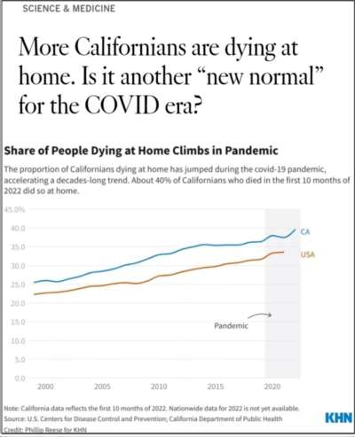 这个媒体标题的意思是,“更多加州人死在家里,这是新冠时代的又一常态吗?”