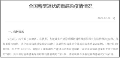 此外,2月4日公布的疫情周报显示,1月27日至2月2日,在院新冠病毒感染相关死亡病例3278例。