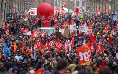 据媒体报道,当地时间2月7日,法国工会发起第三轮全国罢工,以反对该国退休制度改革计划。法国内政部统计称法国各地超75万人参与罢工抗议活动,而法国工会组织估计,全国范围来自能源、交通、炼油、造船等行业的工人约有200万人参与了罢工。
