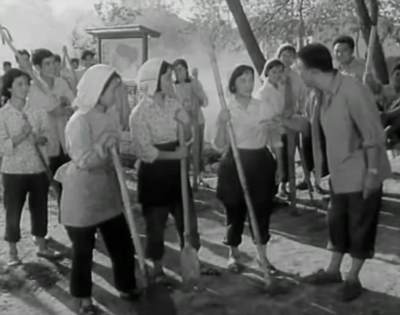毛时代政策的特点是弹性,不事先设定条条框框,交给群众实践,而发动群众主要依靠宣传、教育等动员方式,“宣传归宣传”由宣传者亲口说出,这本身就意味着宣传的失效。当宣传者自身也无法理解宣传的内容时,宣传内容的合理性本身也受到怀疑,而这种怀疑又是不被允许的,主人公必须排除万难接受宣传的内容。影片中田大妈以打破第四堵墙的方式说服了自己,但正如台词所说的,她会说服自己,但如何说服自己我们不得而知,这种说服很难说是经过了理性思考(更多的是依靠党性)。