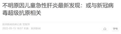 此外,《柳叶刀·胃肠病和肝病学》的两位作者,发文,认为不明原因儿童急性肝炎,可能与超级抗原相关。
