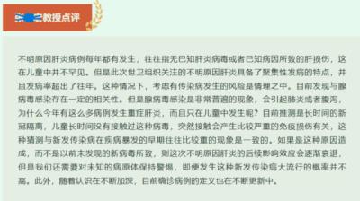 去年4月29日,针对多国集中爆发的“不明原因急性重型肝炎”,某神算的知名肝病医生在该院感染科公众号号中就给了自己的精彩点评: