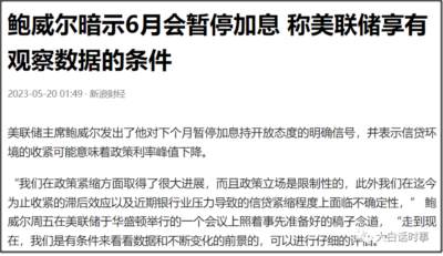 鲍威尔称“近期银行业压力导致的信贷紧缩程度上面临不确定性”