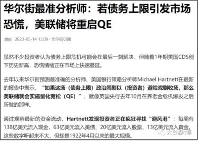 比如,我最近经常跟大家说的,如果美国6月提高债务上限,美国政府在未来半年至少会发行1万亿美元国债,这在美联储缩表周期里,很容易抽干市场流动性,导致流动性危机出现。