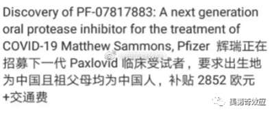 比如辉瑞最近就在脸书到处打广告,招募“纯正血统”的中国人进行特异的临床实验。