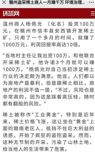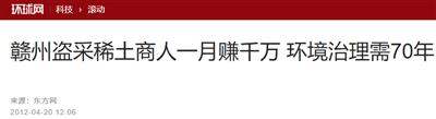 2011年以后,媒体曾广泛报道了赣州稀土滥采的状况: