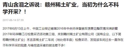 然而,2016年-2017年《经济参考报》、《中国工业报》等媒体的实地调查采访,发现赣州稀土私挖滥采依旧触目惊心,这无疑是打了史文清的脸。