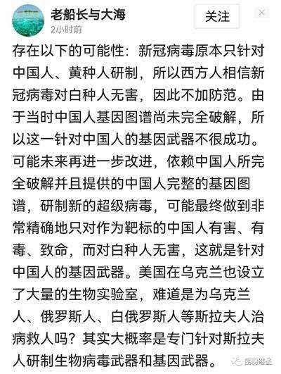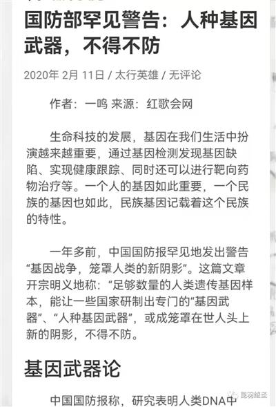 有网友忧心忡忡地表示,新冠最终失败,是由于当时中国人的基因图谱尚未完全破解,所以这一款基因武器并不是很成功。倘若现在有了中国人完整的基因图谱呢?又当如何?