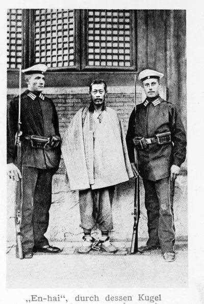 恩海是一个有武艺的旗人,也仅此而已。没受过什么教育,平日里忠君爱国的文化熏陶,大约都是来源于茶馆戏园的说岳三国,主义、革命或是其他的概念离他太遥远了。对他来说,这或许只是一个男人的正义感是否兑现的问题:一个外国人在我们的土地上耀武扬威的杀人,难道连给他一枪的勇气和权力都不应该有吗?也有很多人说,他是受了端亲王指使,“杀几个洋鬼子出口鸟气”,但当这么一个市井中有些侠气的普通人,在受刑前喊出“下辈子还得干他们,我就不信永远干不过他们”的时候,争执这些细节已经无关紧要了。