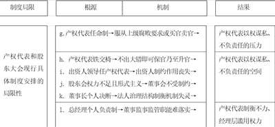 监督制约不到位的一个结果是所谓“内部人控制”,形成追求企业内部人利益最大化而侵蚀国家利益的倾向。以上情形归纳为图1。