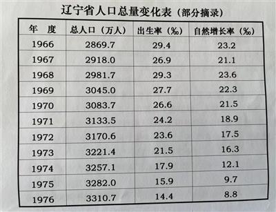 三十多年后,我看到1989“中国统计出版社”出版的《辽宁奋进四十年》一书,其中第 329 页“人口自然变动情况”,辽宁人口自然增长率由1970年的千分之21.5,到我被捕的 1976 年,已经下降到千分之 8.8。(见附表)看来陈锡联归纳的三条在辽宁还确实有些成效。