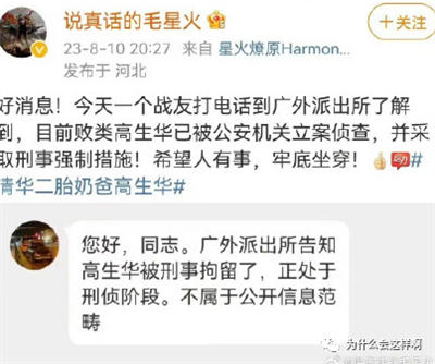 这真是一个令人高兴和振奋的消息,首先要感谢这位同志坚韧不拔的斗争精神,在上个月的月末那个清华的鼠辈在微博上发出侮辱毛主席的言论后,有很多热爱毛主席的人通过各种方式举报,还有很多人发布的举报的截图和举报电话等,感谢这些同志为捍卫毛主席的尊严所作的一切,其实,在新中国,捍卫毛主席的尊严,就是捍卫中华人民共和国的尊严,就是捍卫中华民族的尊严,也是捍卫我们内心的正义,这个道理很简单也很清晰,只有那些内心肮脏无比的人才会不明白这个道理!