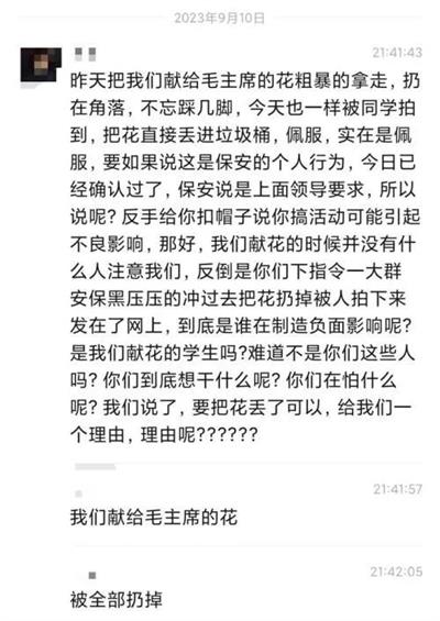 保安属于社会的底层,没有理由这么仇恨毛主席,爆料学生特别指出,“已经确认过了,保安说是上面领导要求的”,他们感到愤怒和大为不解,要求校方给出回应。