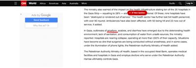 从目前情况看,加沙内部各种传染病的爆发也已成为定局,比如说CNN乌龙新闻的原文中,就提到加沙地区的水痘和疥疮流行,这是非常危险的征兆,水痘的流行暗示着加沙人口年龄结构带来的免疫力缺陷,疥疮的流行则是表明加沙基本卫生条件出现了问题,而更根本的问题在于,随着以色列的封锁,加沙本就很糟糕的医疗卫生与基础设施在快速崩溃。