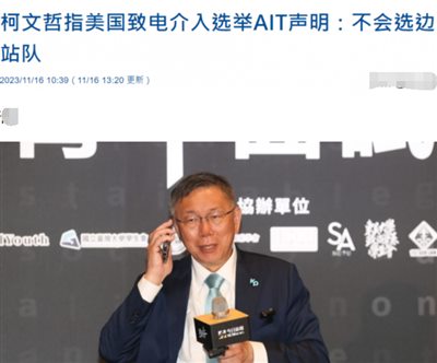 而根据柯文哲的爆料,AIT给他打电话,这前后并不止这一次。关心台湾政局的人都知道,每次台湾“大选”,候选人去美国爸爸那里面试早就是不成文的规矩,这一次当然不例外,以素人面目出现的柯文哲甚至还去了两次,但是这么明目张胆的介入台湾政党之间的攻防,茱萸必较,随时随地下指导棋,还是第一次。