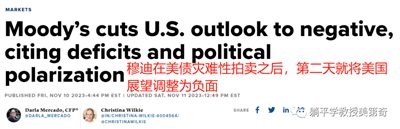 这就是为什么穆迪在11月灾难性的美债拍卖之后,马上把美国评级展望调整为负面的原因。
