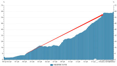 曾经我们是无债一身轻,现在高企的房贷压得我们喘不过气来。居民部门杠杆率(居民贷款/GDP)可以反映老百姓的负债情况。1998年取消福利分房前,居民部门杠杆率为5.2%。从1998年开始,居民部门杠杆率快速攀升,2007年低达到第一个高点19.4%,十年间攀升14.2个百分点。金融危机以来,经历两大一小三次刺激,杠杆率从19.4%暴涨至2020年底的62.3%,十四年间攀升了42.9个百分点。